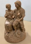 Paul & Virgin Plaster Statue, aged, has damage, 13"h. Paul & Virgin Plaster Statue, aged, has damage, 13"h.