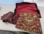 Three Assorted Linens, red tapestry, floral tapestry. Three Assorted Linens, red tapestry, floral tapestry.