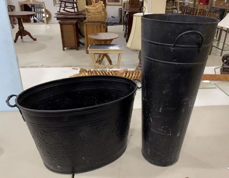 Decorative Metal Tub and Tall Bucket, black painted, 24"h. Decorative Metal Tub and Tall Bucket, black painted, 24"h.