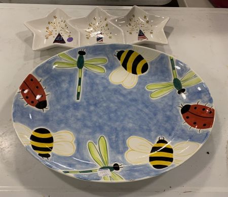 Large Ceramic Butterfly Bowl and Ceramic White Serving Dish Large Ceramic Butterfly Bowl and Ceramic White Serving Dish