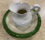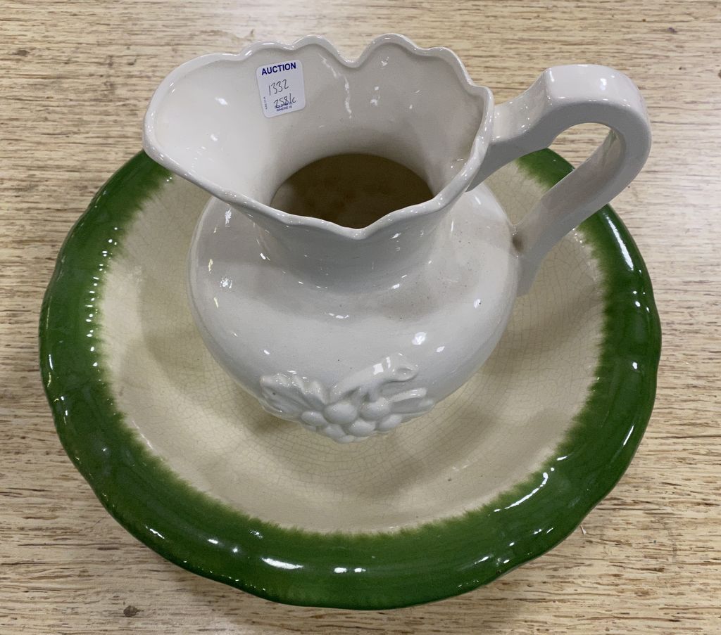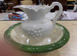 Porcelain wash bowl 15"dia, and porcelain water pitcher, doesn't match. Porcelain wash bowl 15"dia, and porcelain water pitcher, doesn't match.