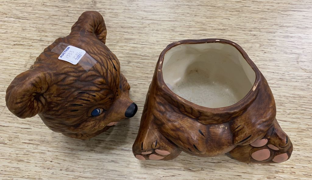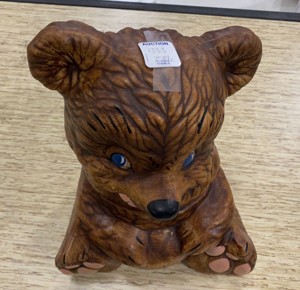 Ceramic Teddy Bear Cookie Jar, hand painted, light wear, 11"h. Ceramic Teddy Bear Cookie Jar, hand painted, light wear, 11"h.
