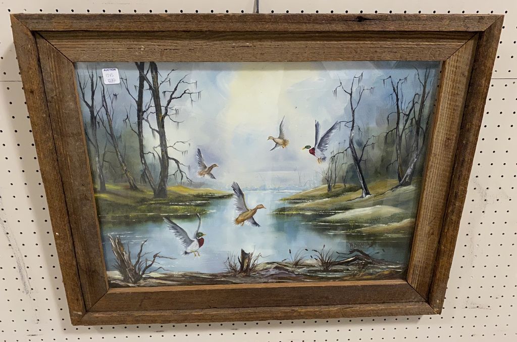 Duck Painting On Canvas, wood framed, signed A. Diamond, 23"h., 30"w. Duck Painting On Canvas, wood framed, signed A. Diamond, 23"h., 30"w.