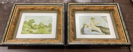 Two Framed Prints, Man and Lady sailboat, Landscape, frames are 12"h., 14"w. Two Framed Prints, Man and Lady sailboat, Landscape, frames are 12"h., 14"w.