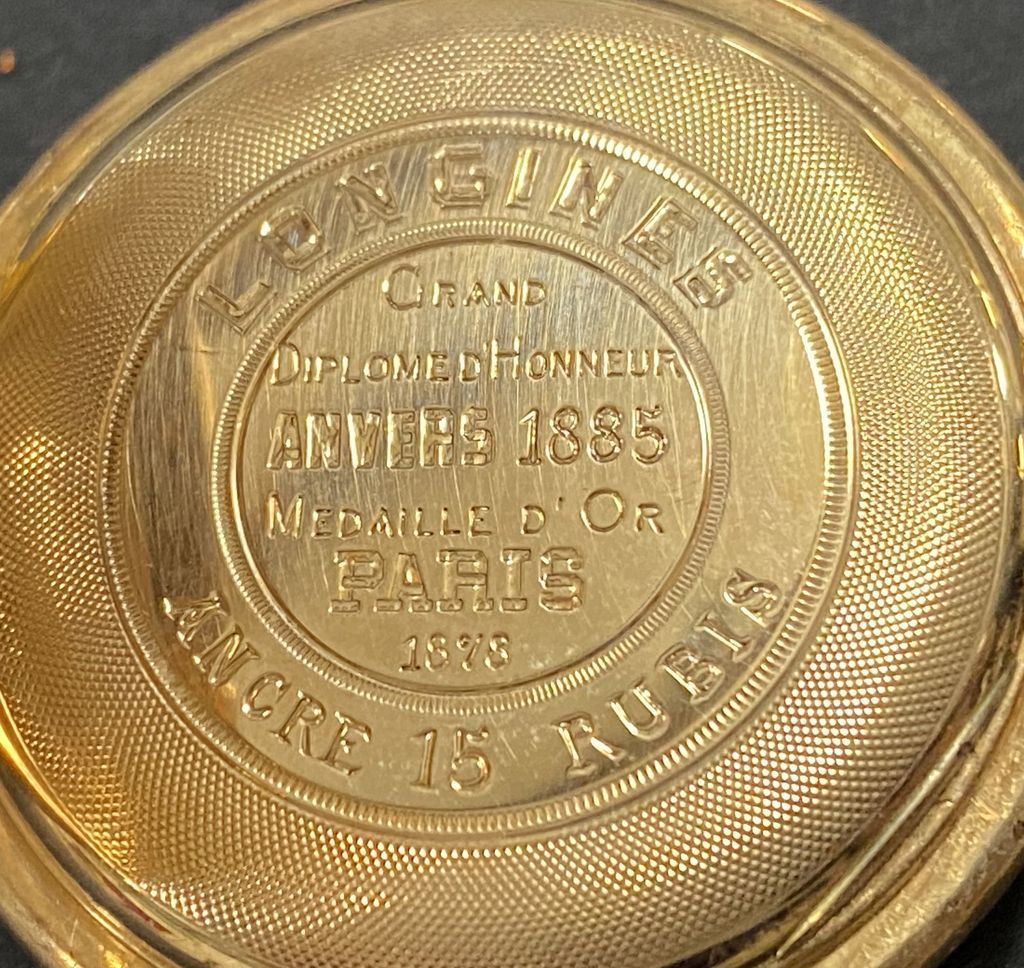 Longines 18K 15 Rubis Pocket Watch, marked K18, diamond star burst on front, missing glass face, marked 18K, runs. Longines 18K 15 Rubis Pocket Watch, marked K18, diamond star burst on front, missing glass face, marked 18K, runs.