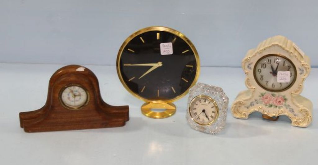 Porcelain electric clock, Shannon quartz clock, Le Coultre clock & Sheffield clock Porcelain electric clock, Shannon quartz clock, Le Coultre clock & Sheffield clock