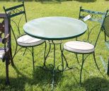656 Metal Glass Top Bistro Table & Two Chairs
