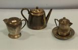 Pewter pitcher, creamer, small tray & silverplate pot Pewter pitcher, creamer, small tray & silverplate pot