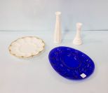 1069 Two Egg Plates & Two Milk Glass Vases