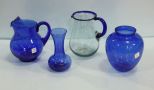 1083 Two Large Glass Pitchers & Two Blue Vases