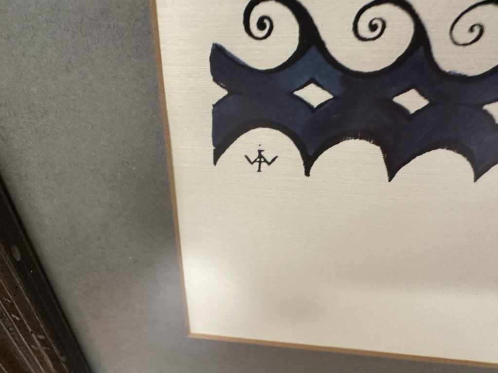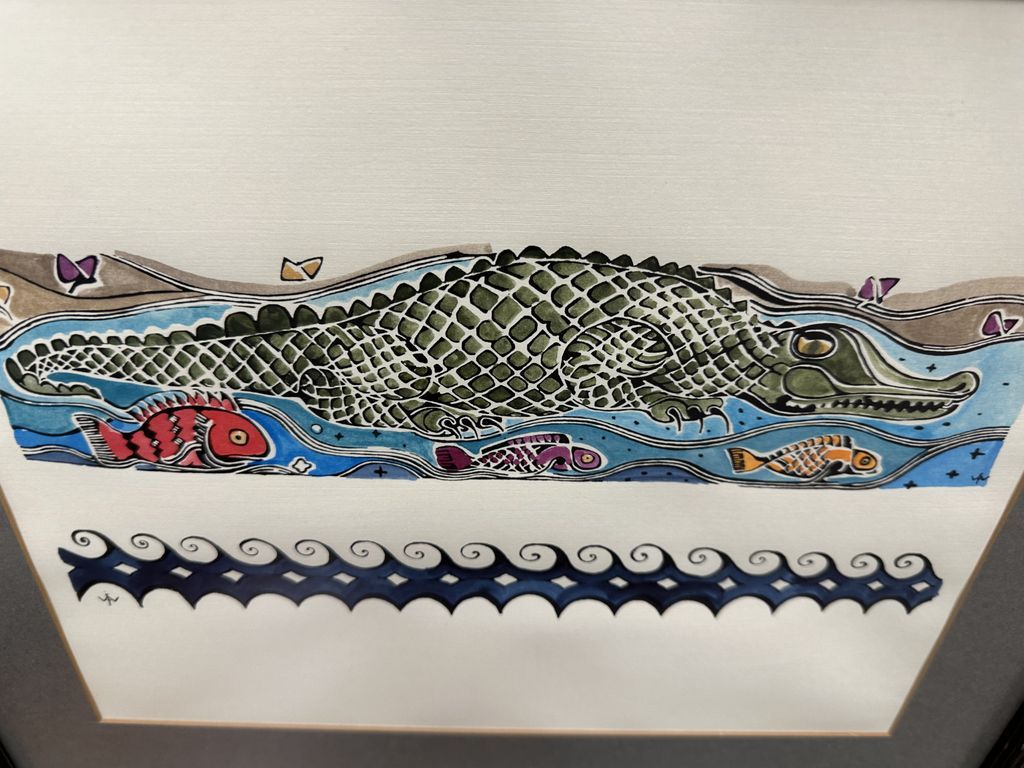 Walter Anderson Alligator Print, hand colored by an arist, matted, framed, 13"h., 18"w. Location Right Metal Shelves 26 Walter Anderson Alligator Print, hand colored by an arist, matted, framed, 13"h., 18"w. Location Right Metal Shelves 26