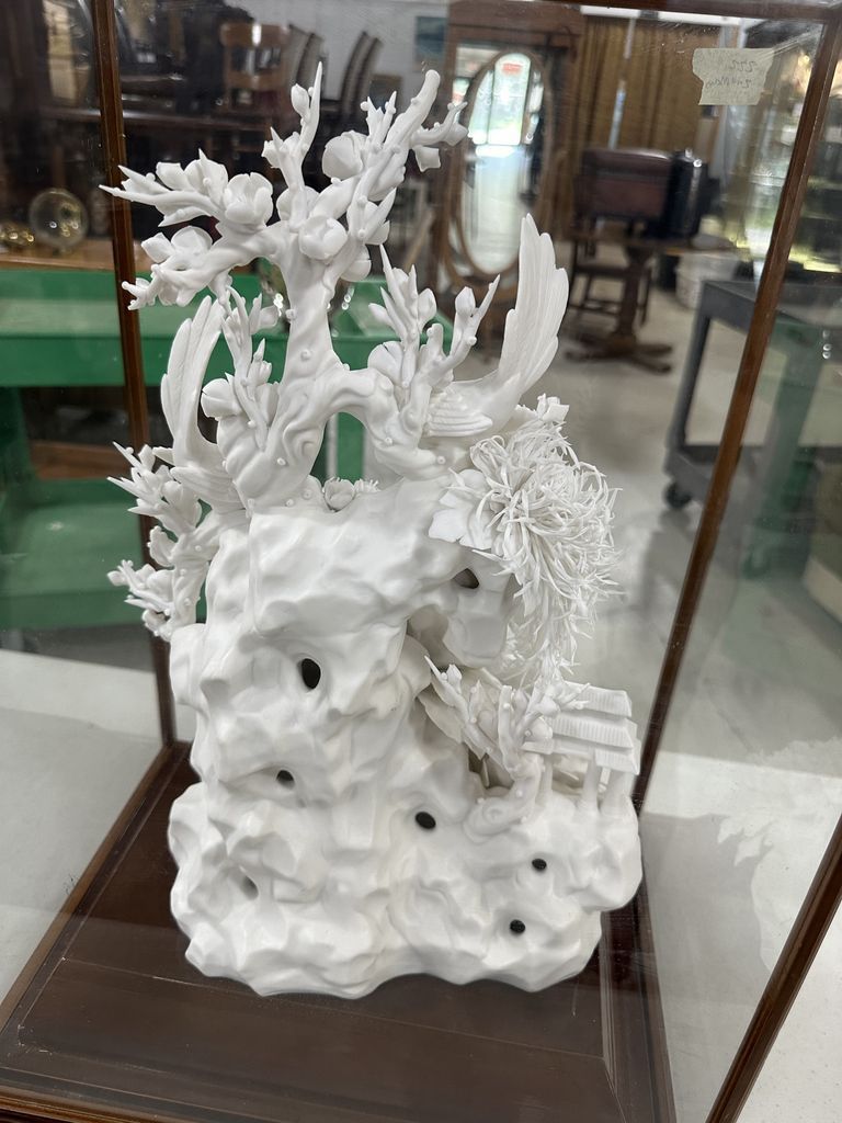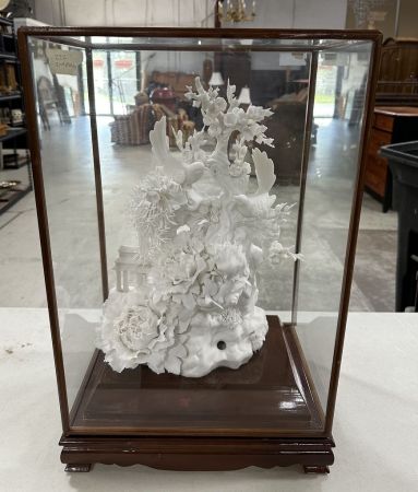 Chinese Porcelain Blanc De Chine Sculpture, 16"h, glass case 23", Location Front Left Shelves Chinese Porcelain Blanc De Chine Sculpture, 16"h, glass case 23", Location Front Left Shelves