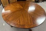 Antique Reproduction Round Traditional Ball n Claw Pedestal Table, has scratch on top, 29"h., 60"dia Location Row 3 Antique Reproduction Round Traditional Ball n Claw Pedestal Table, has scratch on top, 29"h., 60"dia Location Row 3