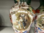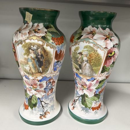 Pair of Antique Hand Painted Glass Victorian Style Vases, 14"h, Location Left Front Shelves Pair of Antique Hand Painted Glass Victorian Style Vases, 14"h, Location Left Front Shelves