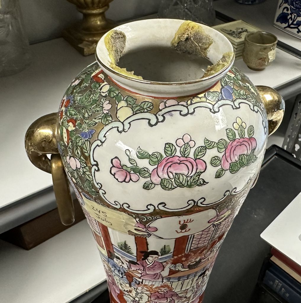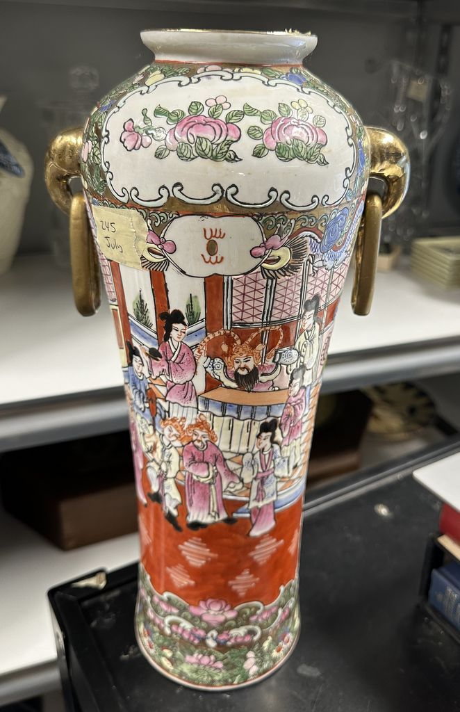 Qianlong Chinese Style Gilded Elephant Handled Vase, 15"h Location Back Metal Shelves 18 Qianlong Chinese Style Gilded Elephant Handled Vase, 15"h Location Back Metal Shelves 18