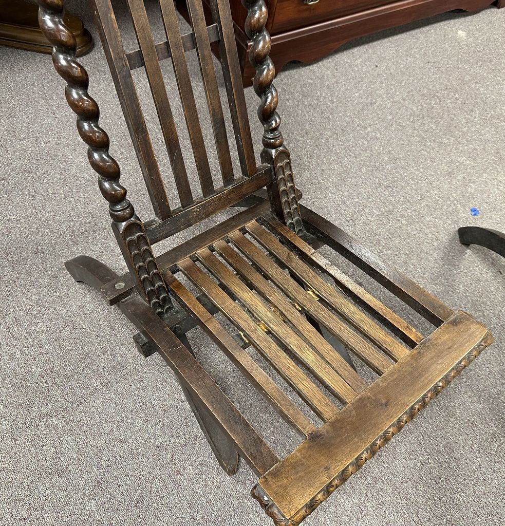 19th Century Georgian Oak Garden Campaign Folding Chair, needs seat bracket reattached, has age wear, Location Row 3 19th Century Georgian Oak Garden Campaign Folding Chair, needs seat bracket reattached, has age wear, Location Row 3