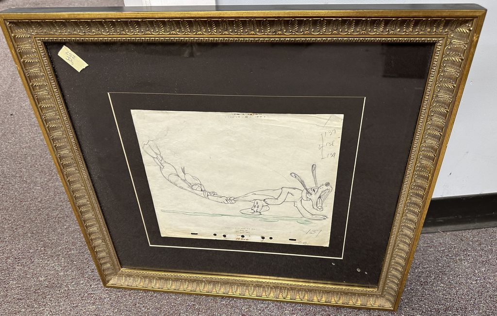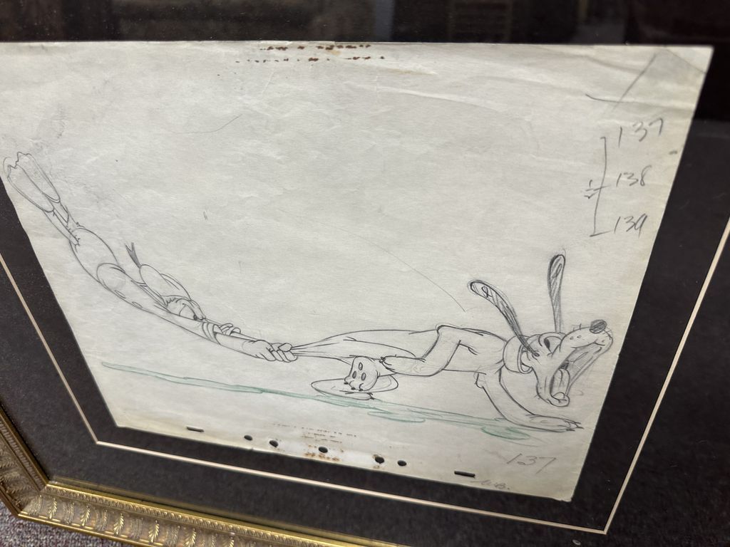 Production Drawing 1940 Cartoon Donald's Dog Laundry by Wilfred Jackson, rare, 21"h., 23"w. Location Front Left Shelves Production Drawing 1940 Cartoon Donald's Dog Laundry by Wilfred Jackson, rare, 21"h., 23"w. Location Front Left Shelves