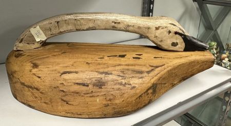 1Primitive Style Wood Carved Goose, age crackle, 9"w, Location Back Metal Shelves 1Primitive Style Wood Carved Goose, age crackle, 9"w, Location Back Metal Shelves