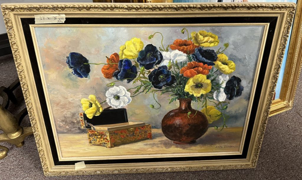 Signed Betty Hamilton Still Life Painting, on canvas, framed, 22"h., 28"w. Mississippi Artist, Location Right Office 3 Signed Betty Hamilton Still Life Painting, on canvas, framed, 22"h., 28"w. Mississippi Artist, Location Right Office 3