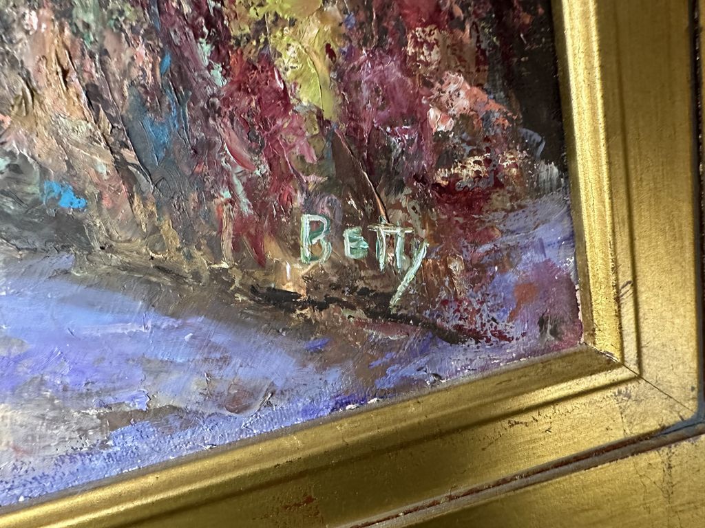 Signed Betty Hamilton Landscape Painting, on canvas, gold framed, 24"h., 27"w Mississippi Artist Location Right Office 3 Signed Betty Hamilton Landscape Painting, on canvas, gold framed, 24"h., 27"w Mississippi Artist Location Right Office 3