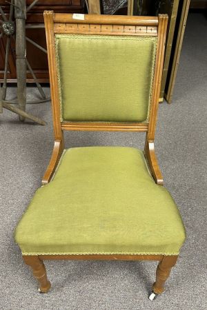 Vintage Victorian Walnut Parlor Chair, front casters, good condition. Location Row 6 Vintage Victorian Walnut Parlor Chair, front casters, good condition. Location Row 6