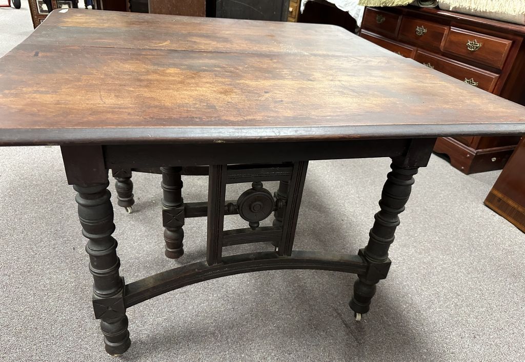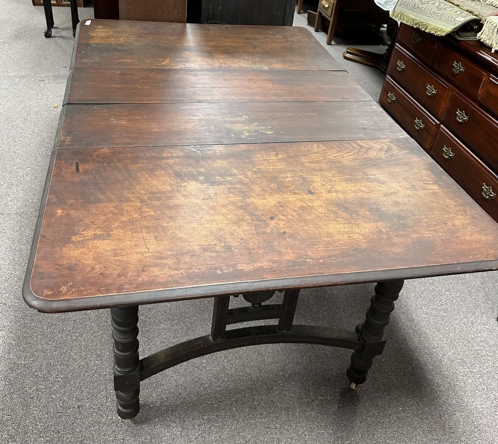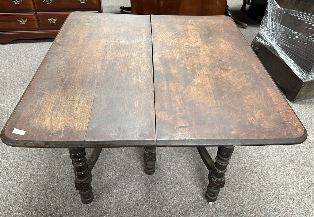 Antique French Style Oak Dining Table, has three leaves, finish is worn. Location Row 3 Antique French Style Oak Dining Table, has three leaves, finish is worn. Location Row 3