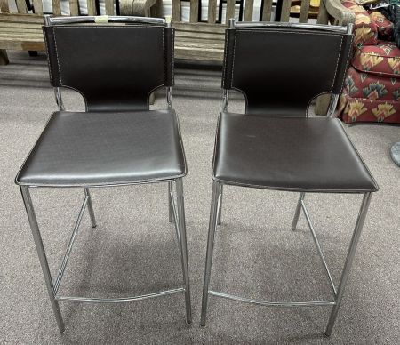 Pair of Wholesale Imports Contemporary Bar Stools, Black cushion, 25"h, Pair of Wholesale Imports Contemporary Bar Stools, Black cushion, 25"h,