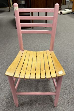 Pink Painted Slat Side Chair, good condition, 33"h., 16"w., Location Row 6 Pink Painted Slat Side Chair, good condition, 33"h., 16"w., Location Row 6
