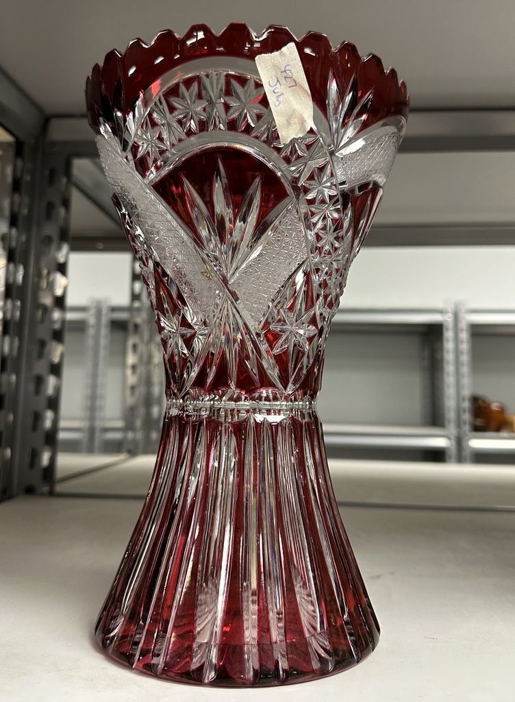 Cut to Clear Cranberry Flower Vase, 10"h, Location Right Metal Shelves 40 Cut to Clear Cranberry Flower Vase, 10"h, Location Right Metal Shelves 40