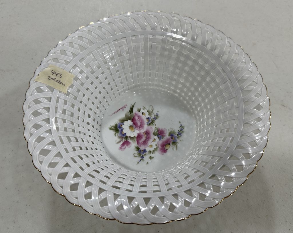 443 Vintage Romanian Porcelain Lace Basket Bowl