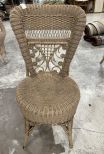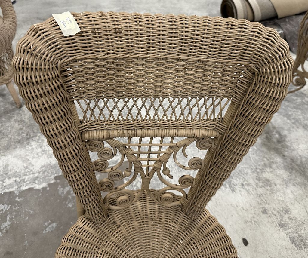 Victorian Reproduction Wicker Patio Chair, good condition. Location Row 2 Victorian Reproduction Wicker Patio Chair, good condition. Location Row 2