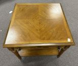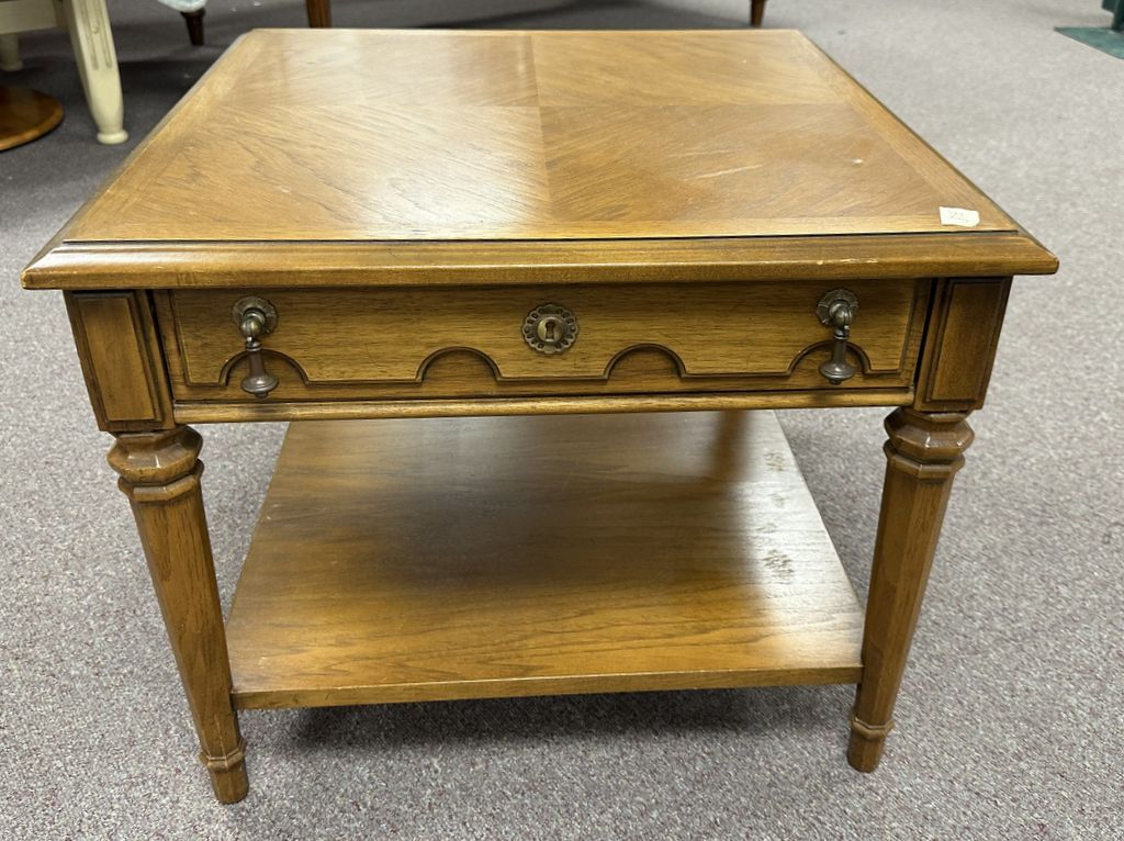 Drexel Co. French Provincial Side Table, two tier, single drawer, 20"h., 26"w. Location Row 5 Drexel Co. French Provincial Side Table, two tier, single drawer, 20"h., 26"w. Location Row 5