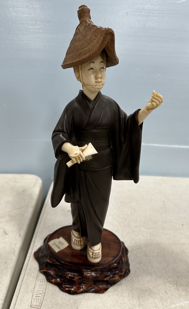 Japanese Carved Tokyo Style Geisha Sculpture, missing piece, 15"h, Location Back Metal Shelves-20 Japanese Carved Tokyo Style Geisha Sculpture, missing piece, 15"h, Location Back Metal Shelves-20