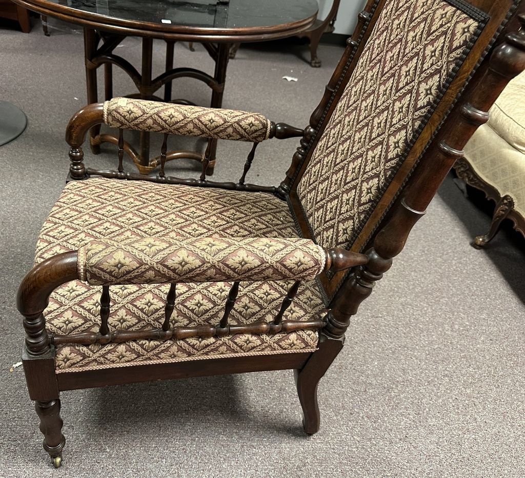 Antique Jacobean Style Mahogany Arm High Back Chair, good condition, Location storage Office Antique Jacobean Style Mahogany Arm High Back Chair, good condition, Location storage Office