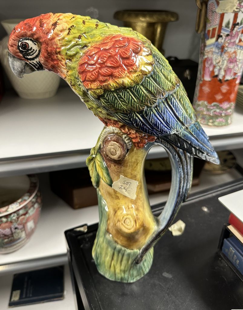Hollywood Regency Style Ceramic Parrot, 15"h, Location Back Metal Shelves 18 Hollywood Regency Style Ceramic Parrot, 15"h, Location Back Metal Shelves 18