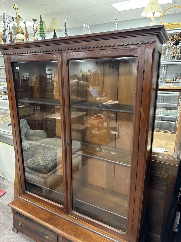 Antique Victorian Mahogany Bookcase, needs work on feet and cracked glass door, shelves, 71"h., 51"w., 17"d. Location Row 0 Antique Victorian Mahogany Bookcase, needs work on feet and cracked glass door, shelves, 71"h., 51"w., 17"d. Location Row 0