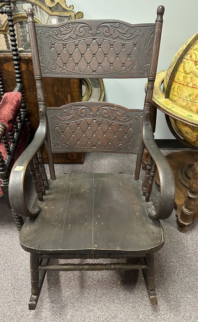 Antique Pressed Oak Victorian Style Rocker, early 1900s, normal age wear, Antique Pressed Oak Victorian Style Rocker, early 1900s, normal age wear,