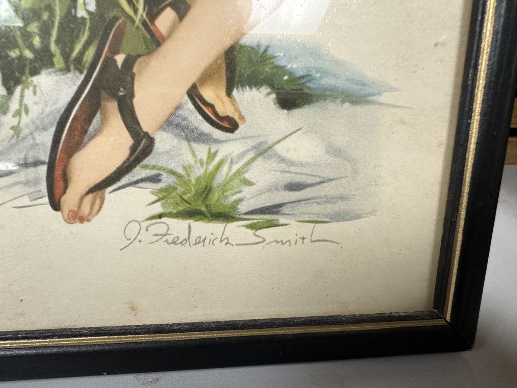1950's J. Frederick Smith Pin UP Art Framed, 12"h., 9"w. Location Right Metal Shelves 28 1950's J. Frederick Smith Pin UP Art Framed, 12"h., 9"w. Location Right Metal Shelves 28