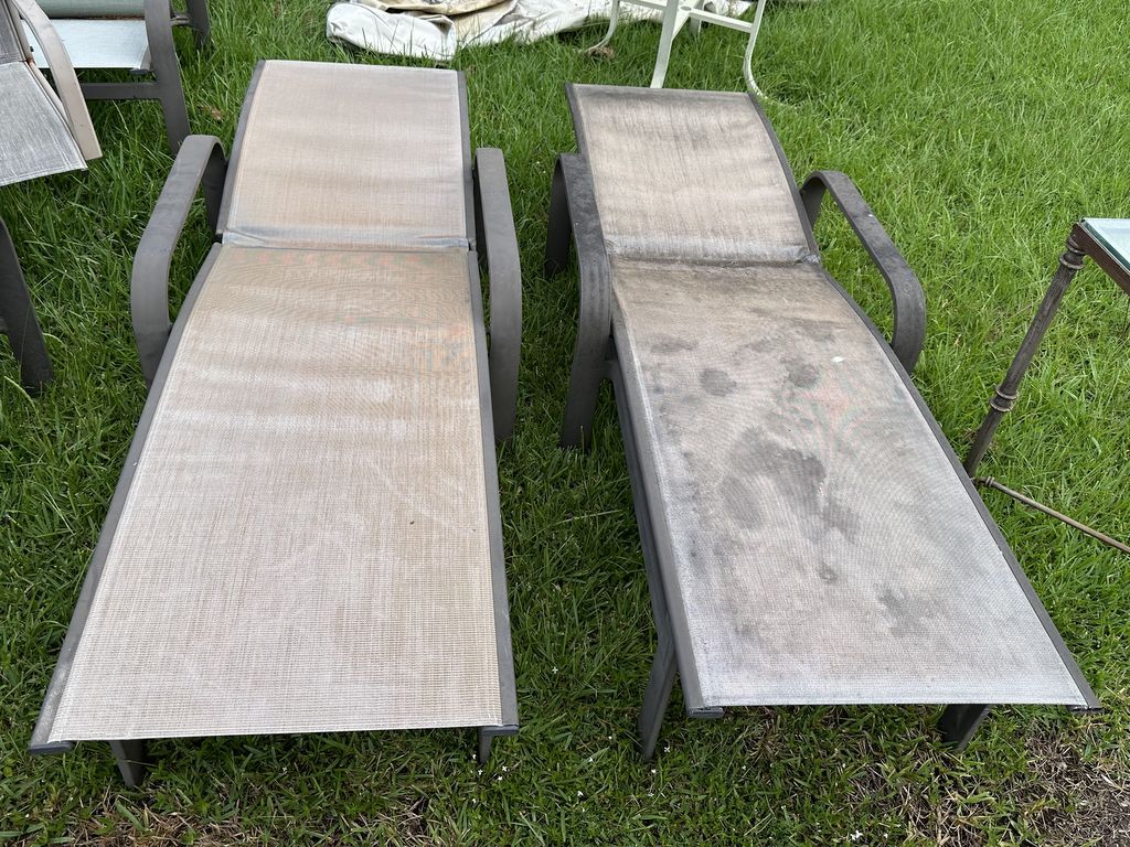 Pair of Metal Outdoor Lounge Chair, one needs bolt in back rest Pair of Metal Outdoor Lounge Chair, one needs bolt in back rest