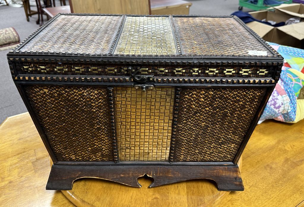 Decorative Wicker Style Storage Box, 15"h., 21"w. Location Row 5 Decorative Wicker Style Storage Box, 15"h., 21"w. Location Row 5