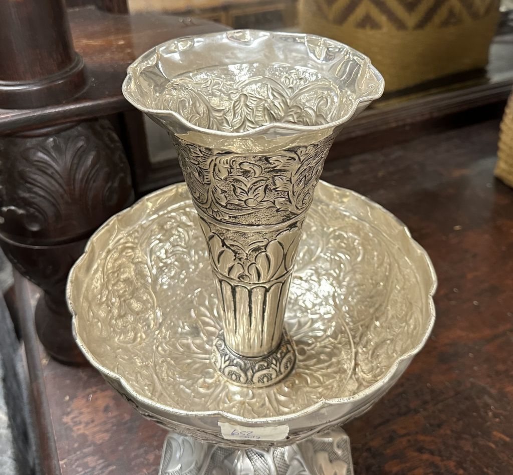 India Silver Plated Engraved Epergne, 17"h Location Row 3 India Silver Plated Engraved Epergne, 17"h Location Row 3