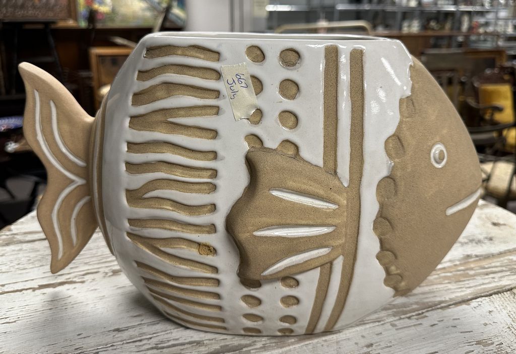 Made in Vietnam Pottery Fish Jar, 10"h, Location Right Office 3 Made in Vietnam Pottery Fish Jar, 10"h, Location Right Office 3