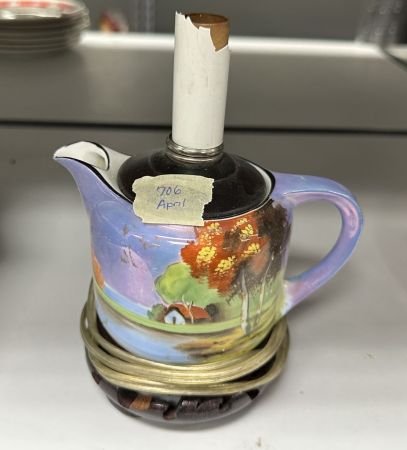 Vintage Porcelain Teapot Lamp 7 1/2" Location Right Metal Shelves Vintage Porcelain Teapot Lamp 7 1/2" Location Right Metal Shelves