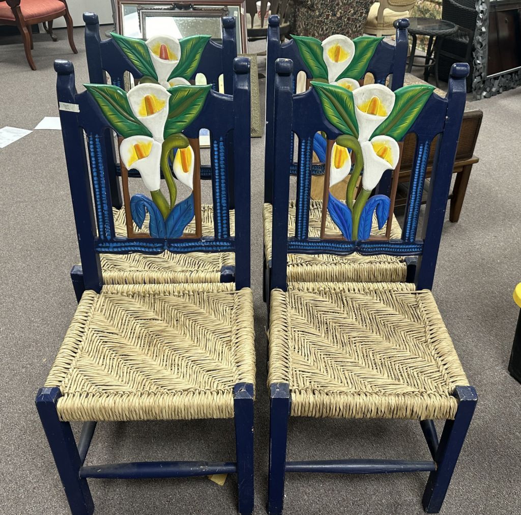Four Painted Flower Vases Woven Side Chairs, Location Row 6 Four Painted Flower Vases Woven Side Chairs, Location Row 6