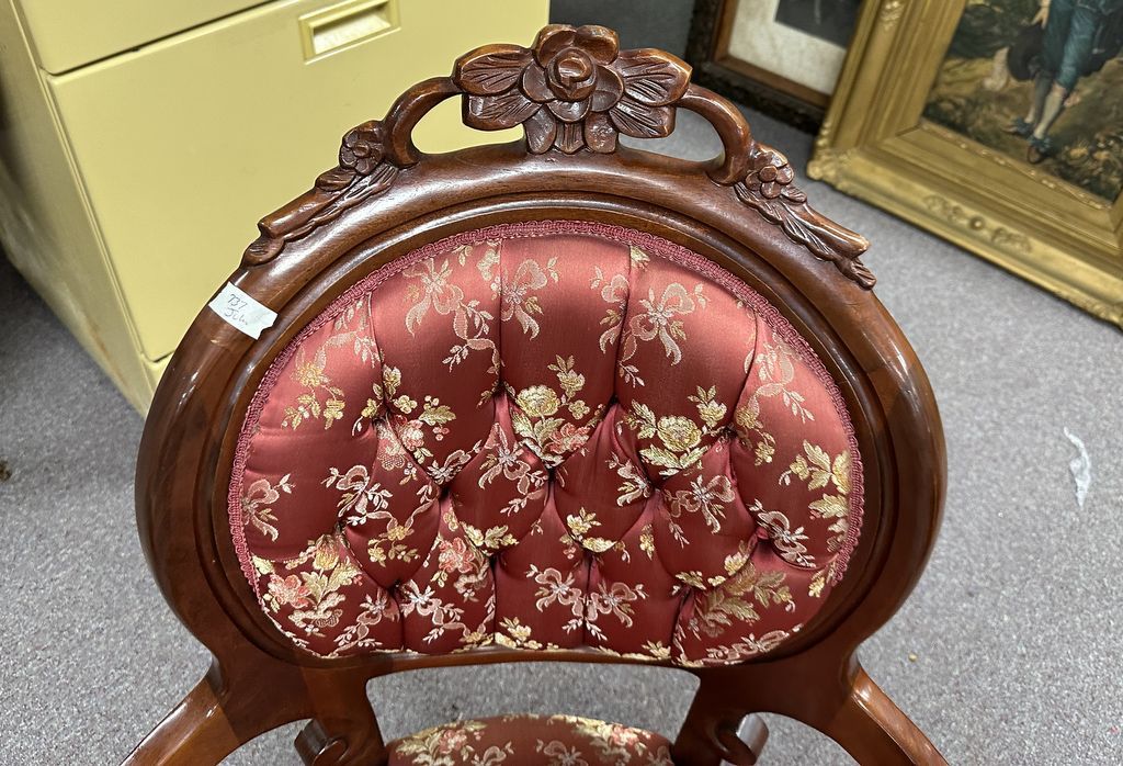 Victorian Style Mahogany Parlor Chair, red upholstered, button tufted. Location Row 0 Victorian Style Mahogany Parlor Chair, red upholstered, button tufted. Location Row 0