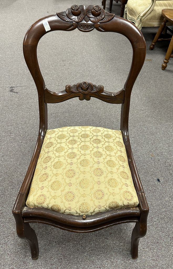 746 Mid Century Victorian Mahogany Carved Side Chair