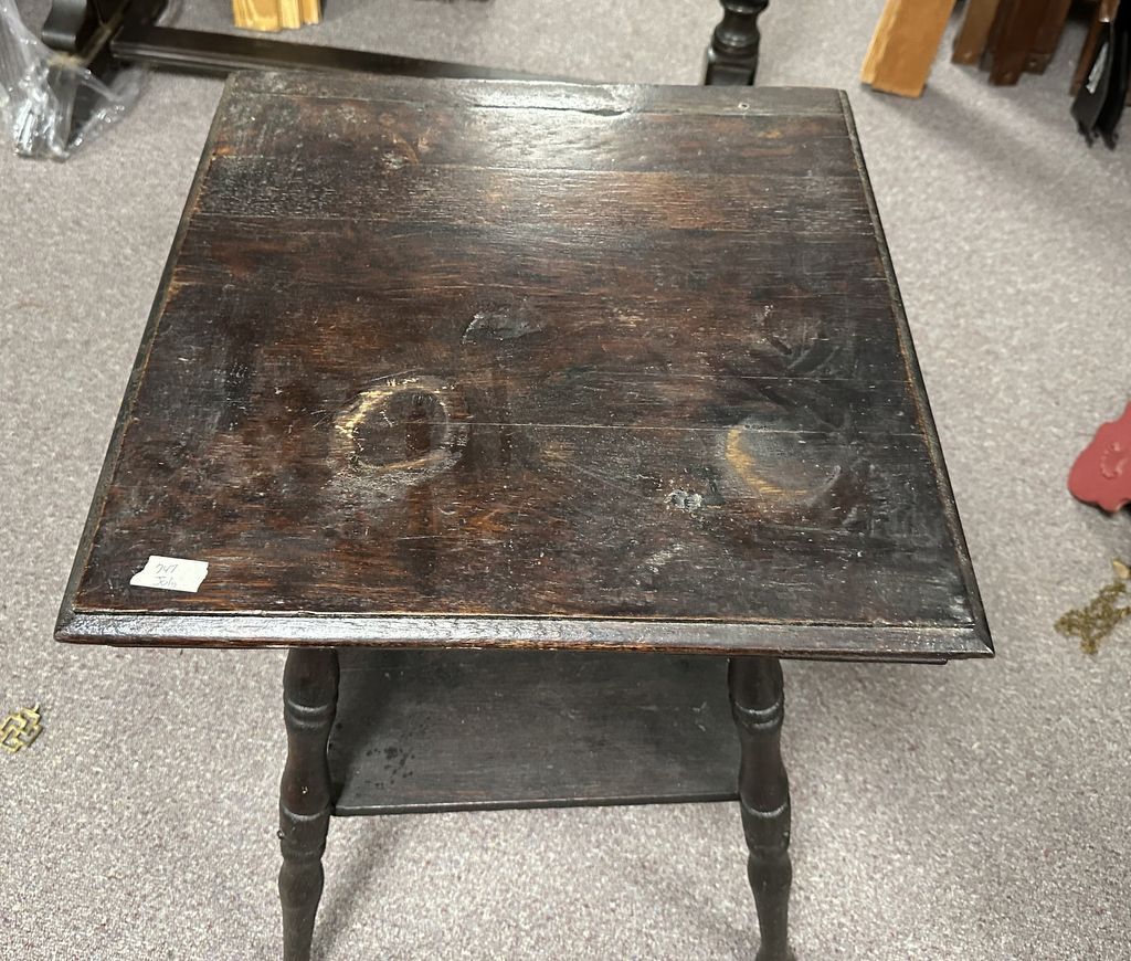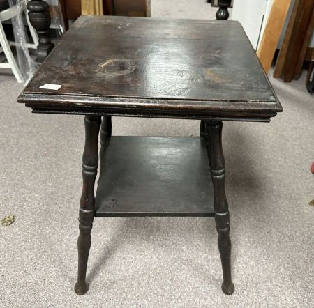 Vintage Mahogany Parlor Table, square top, finish wear, 27"h., 20"w. Location Row 0 Vintage Mahogany Parlor Table, square top, finish wear, 27"h., 20"w. Location Row 0