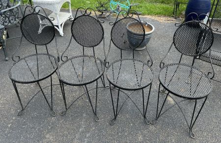 Four Black Wrought Iron Ice Cream Chairs Four Black Wrought Iron Ice Cream Chairs