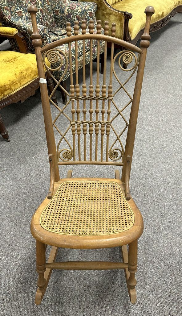 Heywood Wakefield Style Woven Chair, caned seat, finish fade. Location Row 6 Heywood Wakefield Style Woven Chair, caned seat, finish fade. Location Row 6
