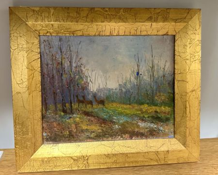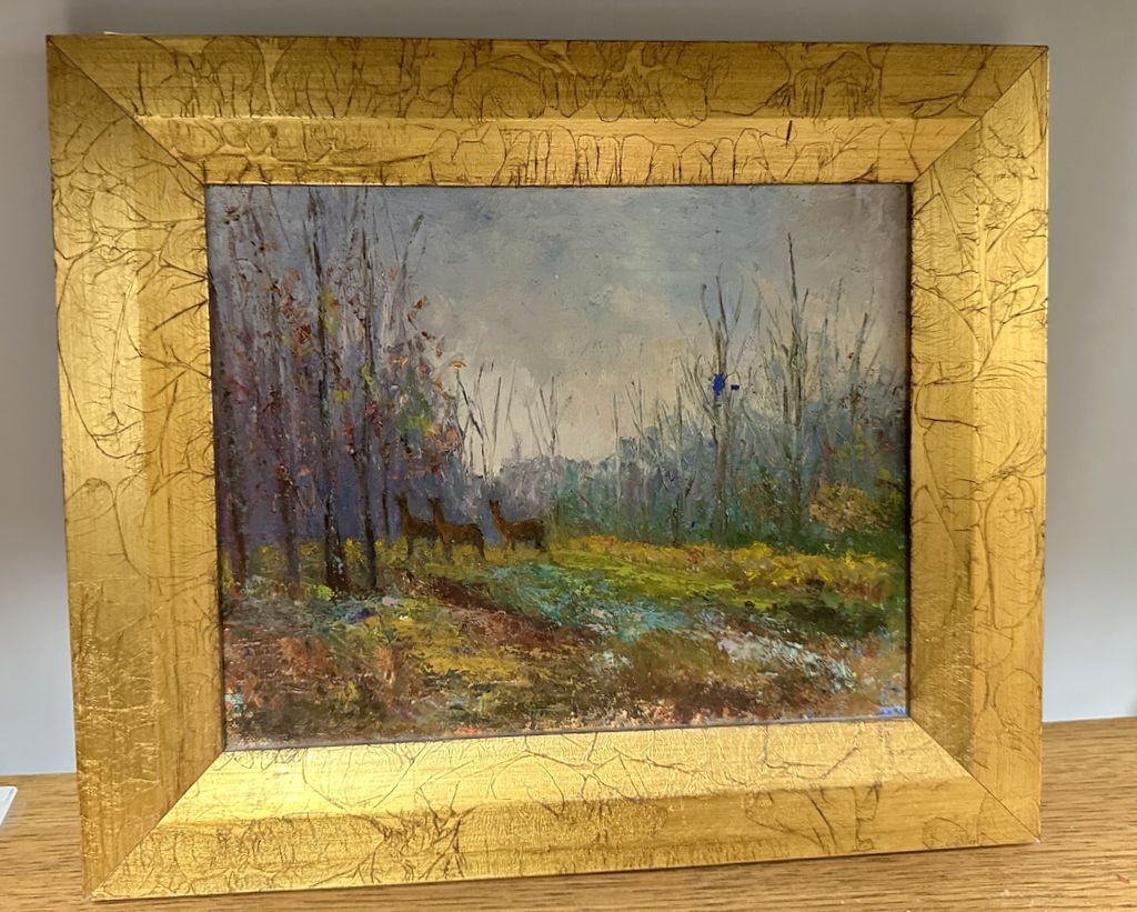 Betty Hamilton Landscape Deer Painting, Mississippi Artist, 11"h., 13"w. Location Right Office 3 Betty Hamilton Landscape Deer Painting, Mississippi Artist, 11"h., 13"w. Location Right Office 3